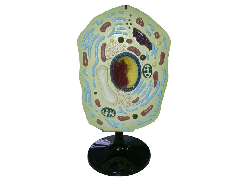 Modelul reproduce structura celulei vegetale, la scară mare, cu detalierea elementelor constitutive. Material: plastic rezistent, colorat. Model pe suport.