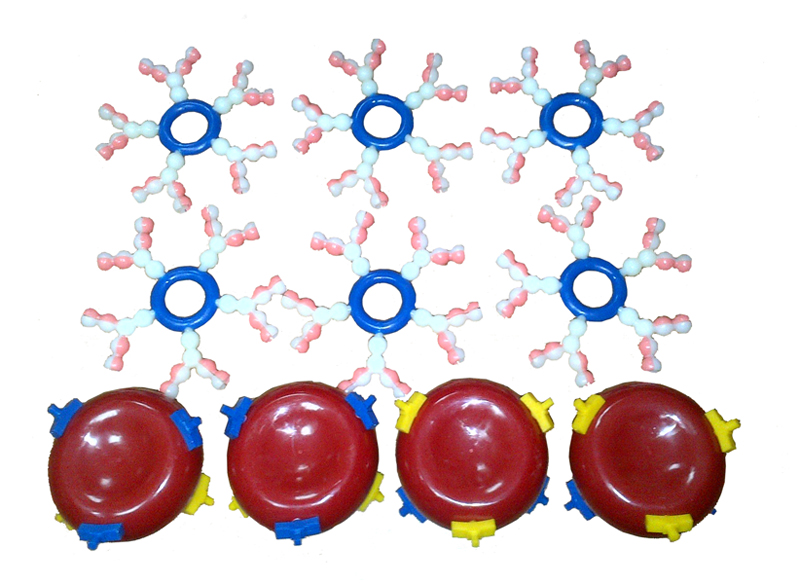 Modelul reprezinta structura chimico-moleculară a sângelui, cu elementele compozitionale viu colorate ce se asamblează, constituind un instrument de lucru util în cadrul orelor de anatomie.