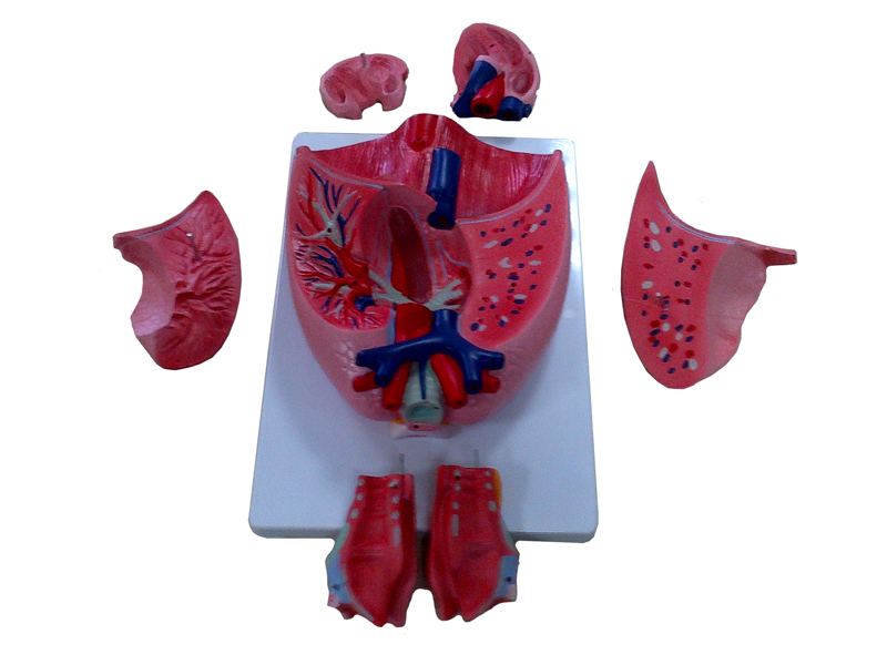 Modelul reproduce plămânii umani, cu trahee, fiind prevăzut cu părţi detaşabile. Anatomia organului cuprinde şi structura sanguină cu inima.