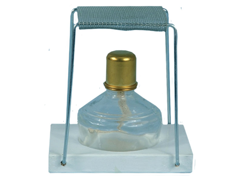 Spirtiera din sticla, cu fitil, capacitatea 100-150 ml, pe suport demontabil; cu capac de protecție, cu sită pe piciorușe.