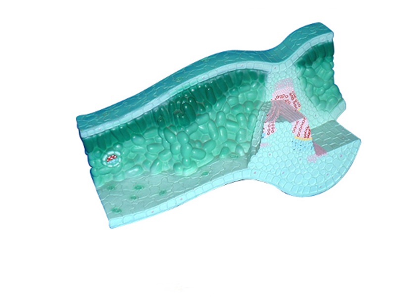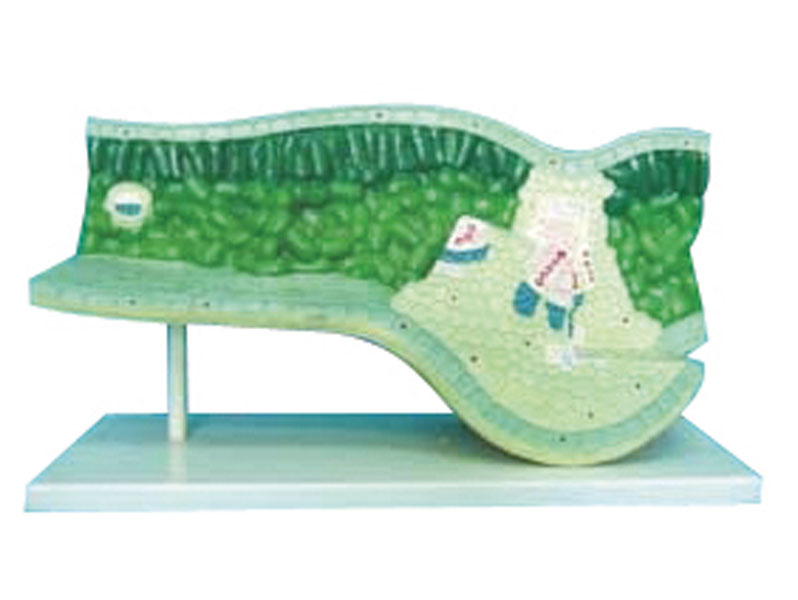 Model 3 D ce reprezinteâă structura frunzei în secțiune transversală, oferind o vizualizare amănunţită a elementelor constitutive. Elementele structurii interne a frunzelor se deosebes prin culori. Dimensiuni: 200 x 450 x 60 mm. Material: plastic PVC, rezistent, incasabil. Montat pe suport.