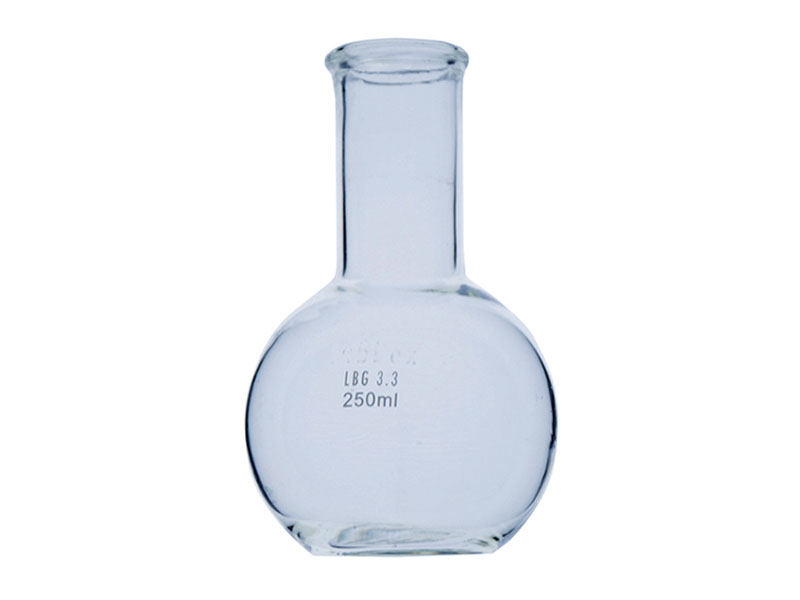 Balon cu fund plat, sticlă borosilicată termorezistentă, capacitatea 100 ml.