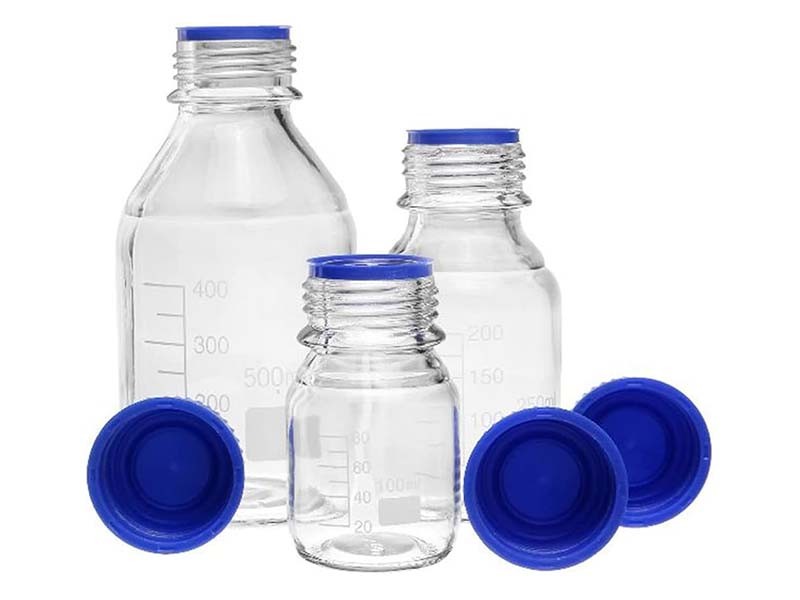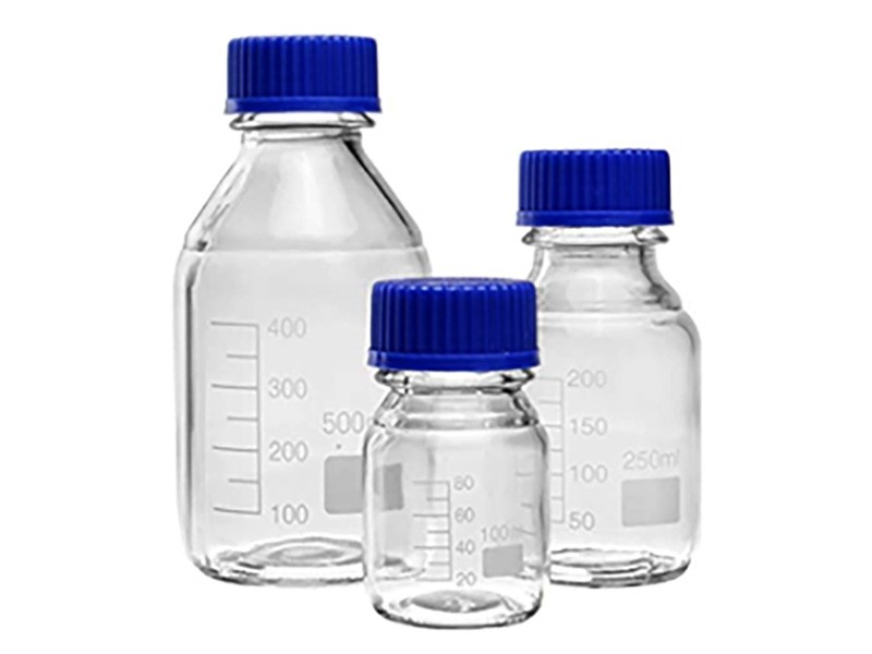RECIPIENT 100 ML din sticlă borosilicatică cu dopuri de polipropilenă pentru păstrarea substanțelor.