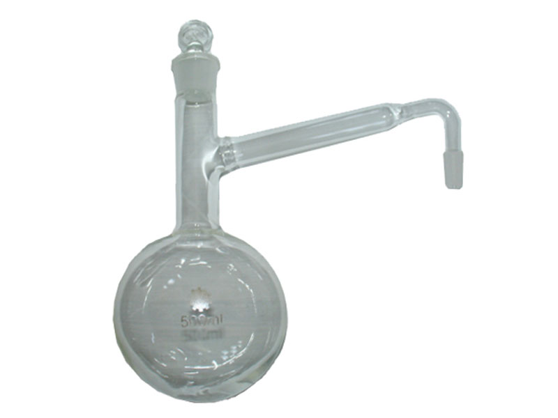 Vas balon rotund pentru încălzirea apei (500 ml) şi refrigerent cu serpentină (Graham) alcătuit dintr-un tub de sticlă sub formă de spirală îmbrăcat într-o manta de sticlă