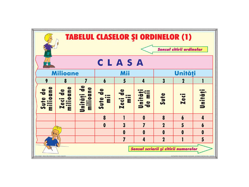 PROBLEME SIMPLE (2)/ TABELUL CLASELOR ȘI ORDINELOR (1). FORMAT 500 X 700MM