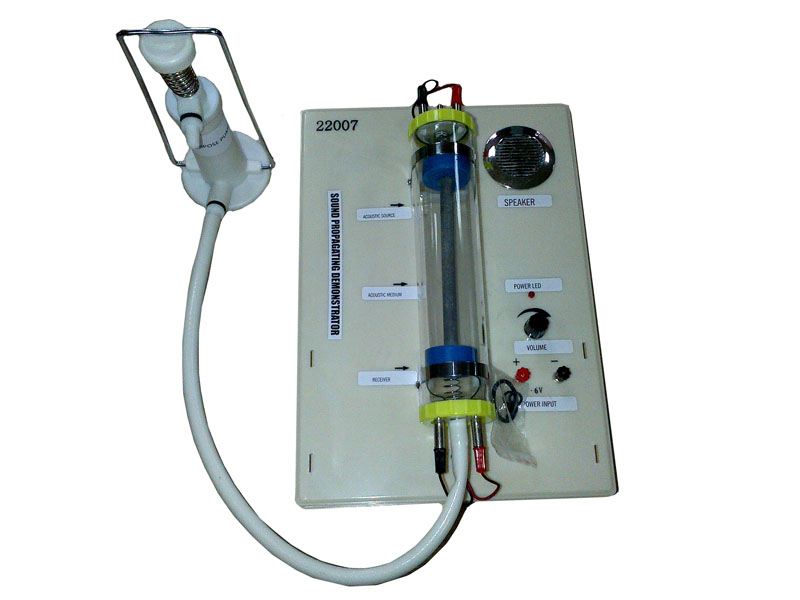 Dispozitiv folosit pentru demonstrarea propagării sunetului în diferite medii, cum ar fi în aer, lichid sau în corpuri solide (nu și în vid). Dimensiuni 250 x 345 x 120 mm. Greutate 1,75 kg. Necesită sursă de tensiune DC 6 V.