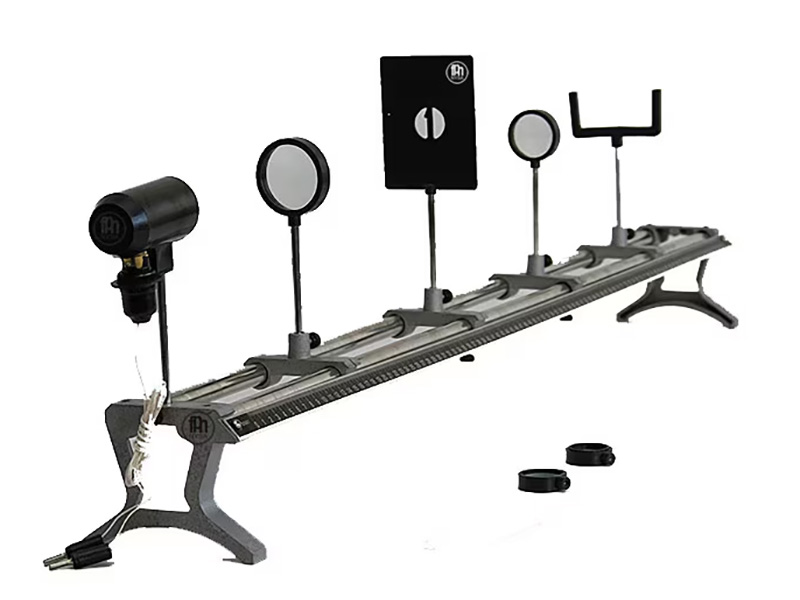 Set pentru studierea proprietăţilor luminii. Sursă permite obţinerea fascicolelor înguste de lumină, lentilă convergentă, lentilă divergentă, oglindă sferică concavă, oglindă sferică convexă, prismă optică, lamă transparentă cu feţele plan paralele, ecran, diodă laser, suport universal din metal pentru fixarea dispozitivelor optice utilizate (l - 1000 mm), bloc de alimentare. Dimensiuni: 1080x125x240 mm.