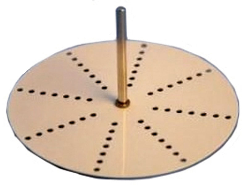 Disc din plastic, cu diametrul 300 mm, cu axă de rotație, cu 56 de găuri cu diametrul 5 mm, radial și simetric distribuite pe suprafața discului pe 8 segmente. Semicerc de platic transparent cu gradație liniară suprapus pe disc. Accesorii: sistem de prindere pe stativ, cuie, ațe cu cârlige.
