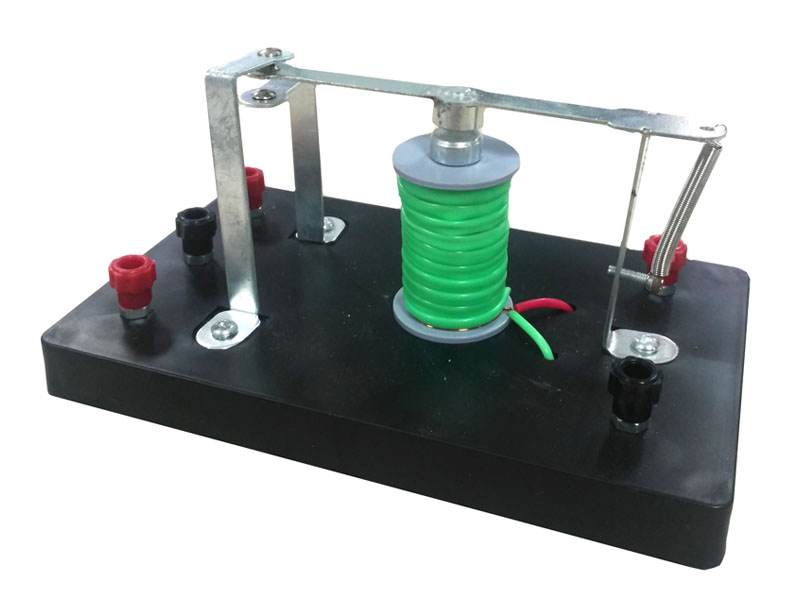 Dispozitiv pentru a demonstra aplicarea practică a electromagneților în studiul electromagnetismului. Dimensiuni bază 150x90 mm. Necesită o sursă de curent de 5-6 V.