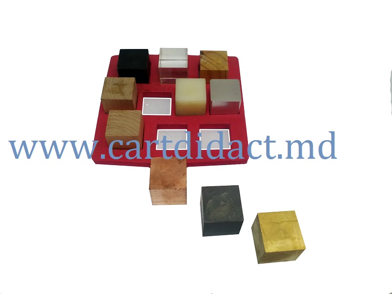 Set din 10 cuburi cu lature de 25 mm (volum egal). Fiecare bloc este fabricat dintr-un material diferit, cu o masă diferită (Br, Cu, Zn, Al, Acril, Plastic, Lemn de esenta tare, Lemn de esenta moale, nailon). O modalitate foarte bună pentru a explica elevilor fenomenul densității.
