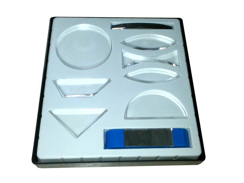 Lentile cu ajutorul cărora elevii pot experimenta fenomenele de refracție și reflexie a luminii. Set de modele din sticlă acrilică de claritate înaltă, modele de lentile convergente, divergente, semicilindru si prisme. Conținut minim 7 piese: 2 modele de lentile divergente, 2 modele de lentile convergente, 2 modele de prisme si 1 semicilindru. Nu include sursă de lumină.