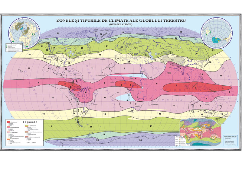 Zonele şi tipurile de climate ale globului terestru. 1600x1000 mm