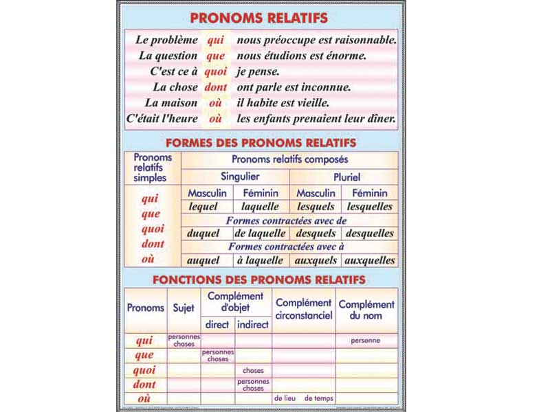 Pronoms relatifs (faţa) // Le pluriel des noms (verso)