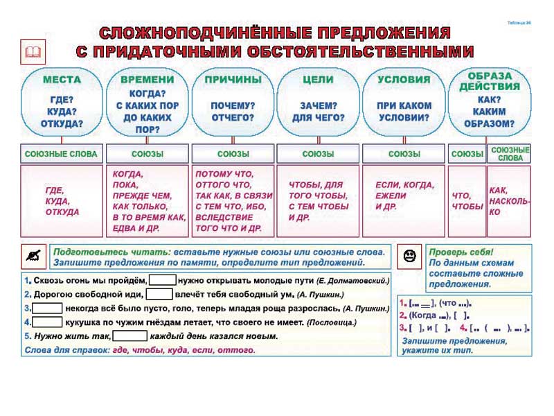 Сложноподчиненные предложения с придаточными обстоятельственными // Сложные бессоюзные предложение