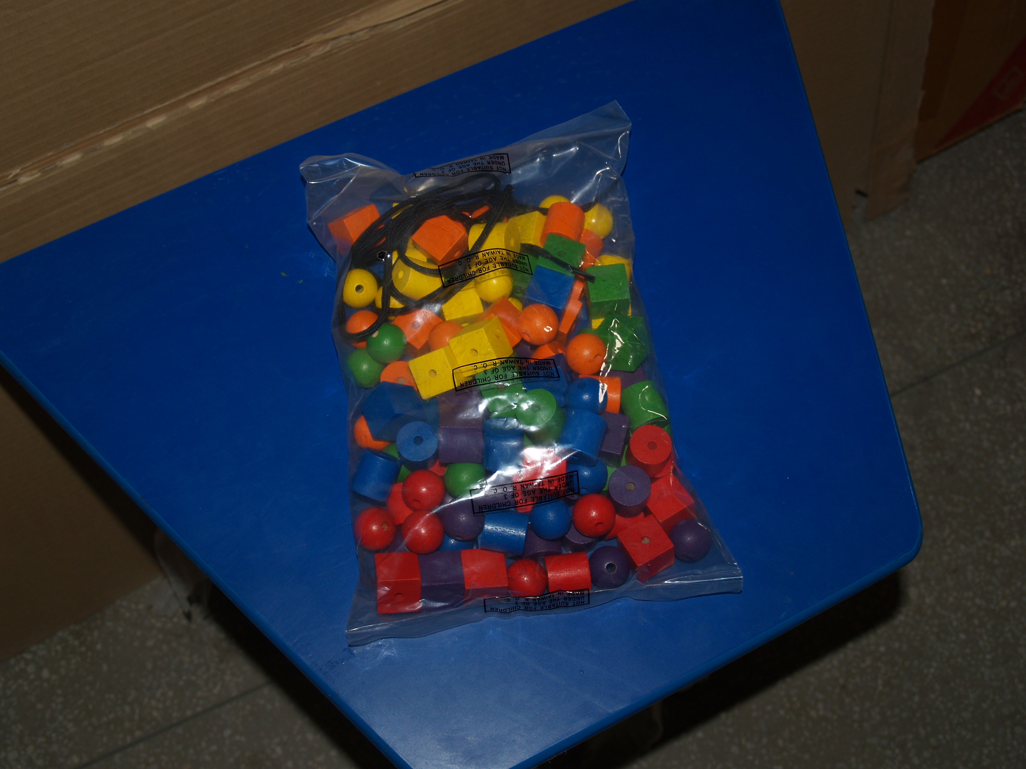 Set de corpuri geometrice din lemn pe şireturi în pungă