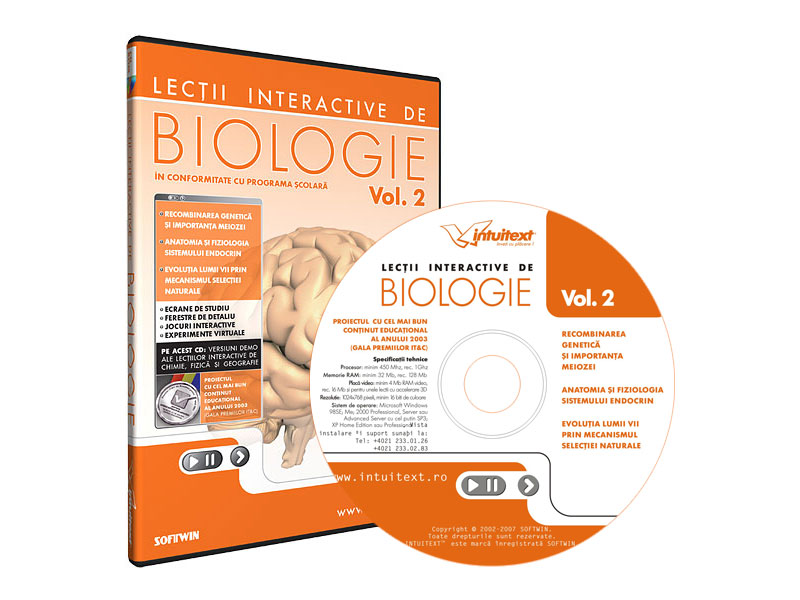Lecţiile Interactive de Biologie – Vol. II redau vizual legile complexe care guvernează lumea vie, tratând fenomene şi procese precum: recombinarea genetică; sistemul endocrin şi evoluţia prin selecţie naturală.