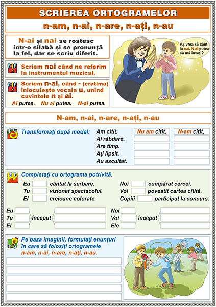 • Scrierea ortogramelor n-am/n-ai/n-are/n-ati/n-au