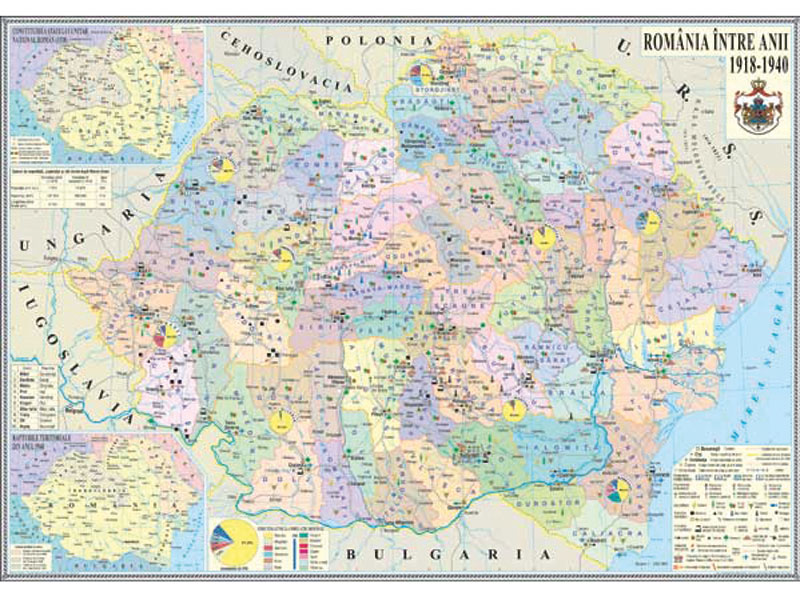 Harta reflectă realităţile politico-teritoriale ale României după Marea Unire din 1918 până în anul 1940.