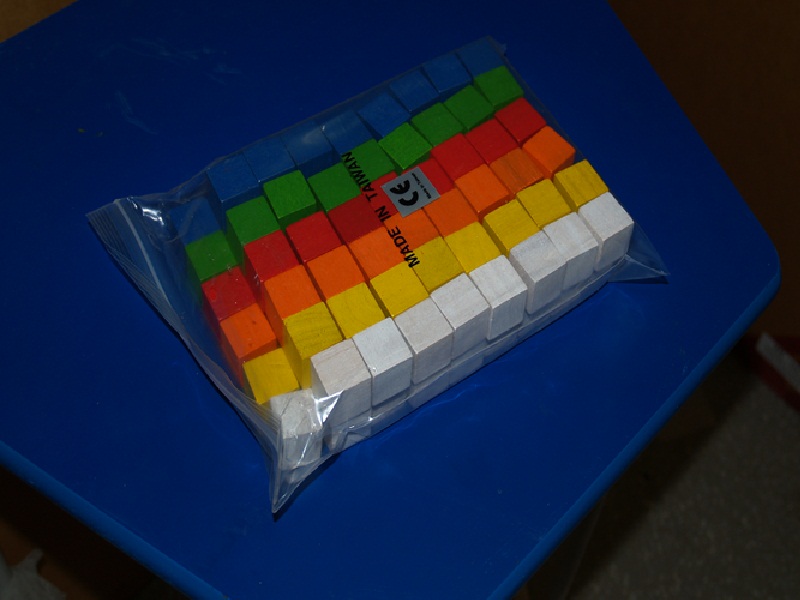 Set cuburi de lemn, diferite culori, dimensiuni identice
